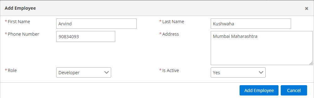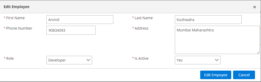Now browse employee.aspx page to perform the crud operation using angular and SharePoint online.