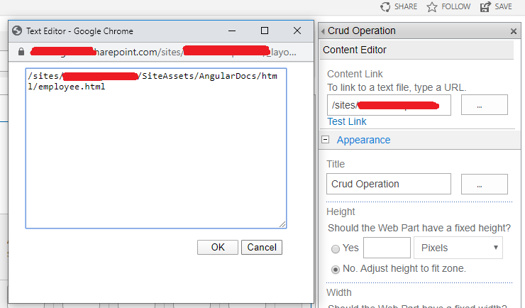 Finally, refer this html(employee.html) file in (Employee.aspx) file content editor.