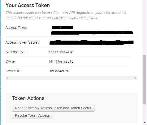 Similarly, on the same page, you will see your Access Token and Access Token Secret.