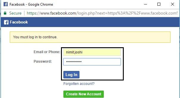 Facebook will ask you to allow an app to publish the information and you can switch the user also from this wizard, otherwise login to Facebook.