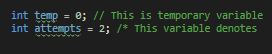 You should always put one empty space after the // double slash comment or after /* slash star comment, to improve the readability.