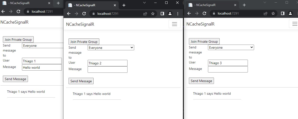 The practical example will explain how to set up the project and how to describe its main methods usage. In the end, we will have the Web Application working, with clients sending messages from one to another through NCache Backplane.
