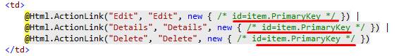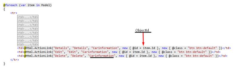 We have assigned object id which is a unique id in MongoDB to id parameter in ActionLink.