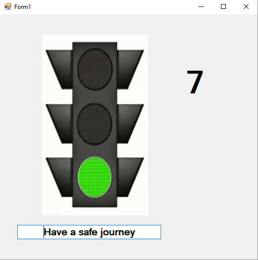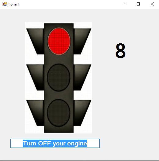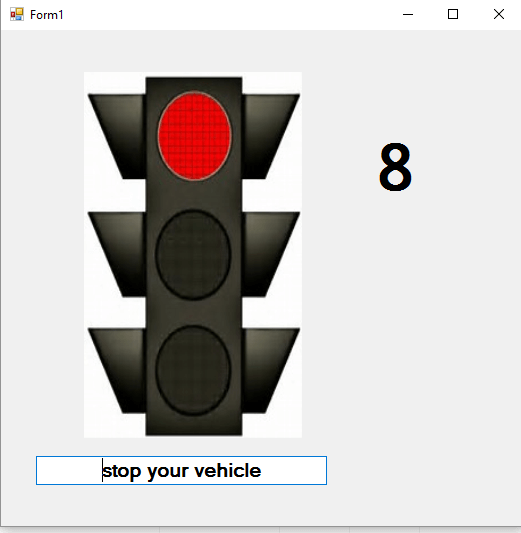 After placing the controls in the right place inside the windows form and applying the below given code into the controls we could get the running traffic signal application without any errors.