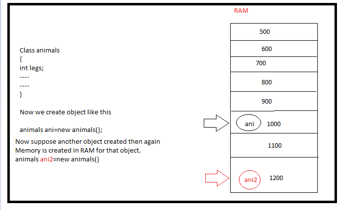 - When we create an object of a class a memory is allocated in the RAM (Random Access Memory).