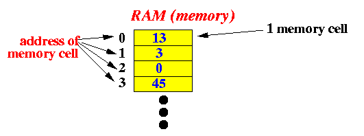 - RAM (Random Access Memory) is made up of cells. Each cell has its own unique address, where exactly the object will be stored.