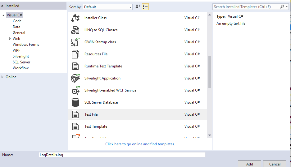 - Rename it as "LogDetails.log" and save the file. Put the file path in the log class, as shown above.