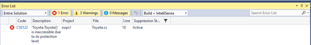 - A private constructor cannot be inherited. If you try to inherit a private constructor, it will give the error and one more important point about the private constructor is if you want to create an object of the class, it will give an error and hence does not allow you to create an object.