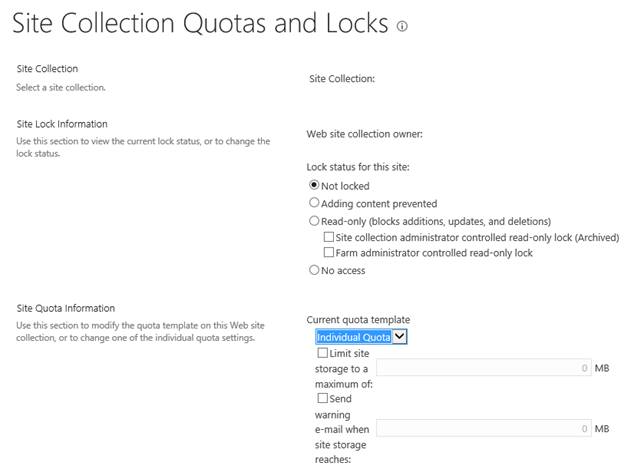 In this article, we will see how to configure site collection quotas and locks in SharePoint 2013 central admin. Here, we can configure the size of the sites in each site collection and configure the size quota on each site template which is present in the site collection and can lock down the site collection.
