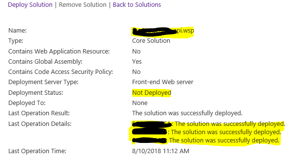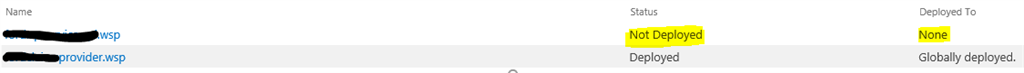 - If you browse the Manage Farm Solution from Central admin, the Status of the Solution is Not Deployed,