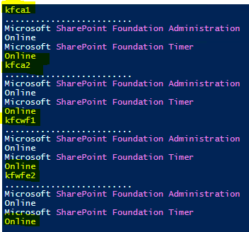 - If you run the Script to check the status of the timer job, you will see all the servers return with Online Status: