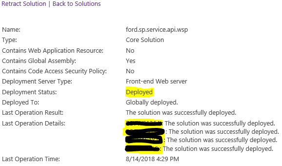. - If you check the solution properties then it will show it has deployed to all servers as expected.