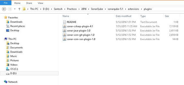 Copy C plugin (\Sonar\sonar-csharp-plugin-4.1.jar) files into the /extensions/plugins location of your SonarQube Server installation folder. For reference, find the screenshot given below.