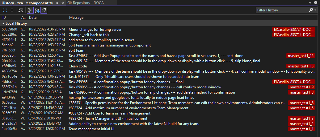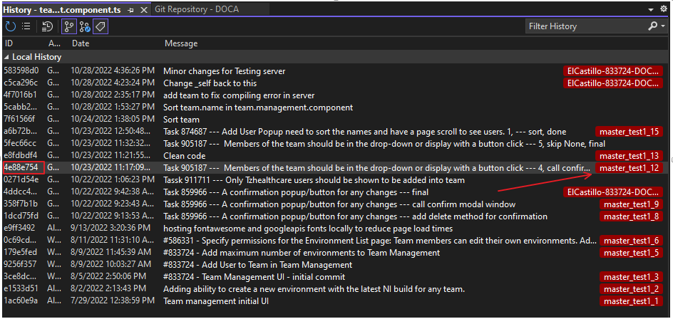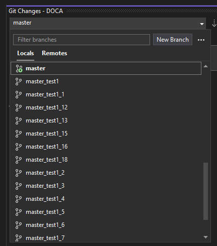 The new created branch, master_test1_12, will be shown in the file chosen history: