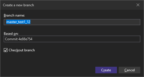 In the Create a new branch window, type in a name, I made it as master_test1_12: