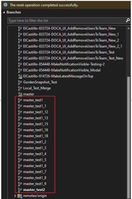 Create the new Branch, master_test1_12, it will be checking out automatically: