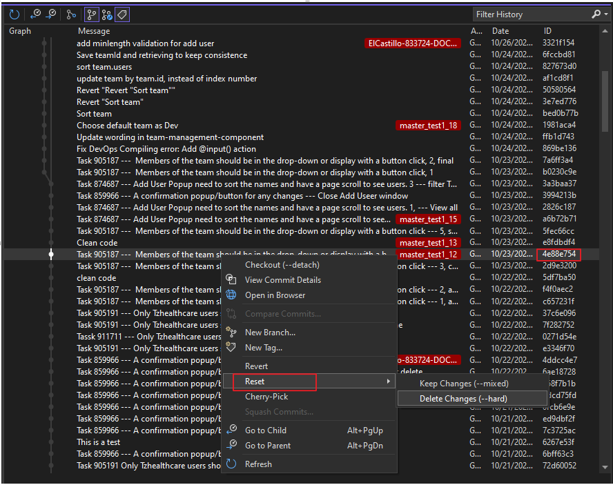 - C - Use Reset to Get the New Branch from a Commit in a View History