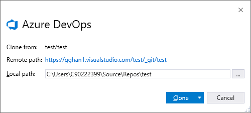 giving the path, click the button: Clone, we have the repository cloned in local,
