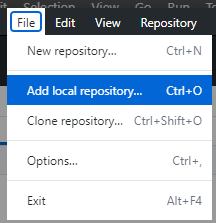 1, From GitHub Desktop Menu: File => Add local repository,