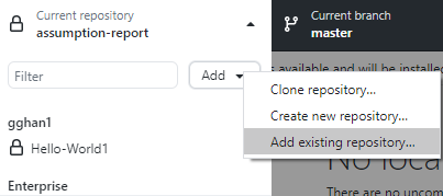 2, Click Current repository => Add => Add existing Repository,