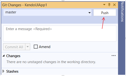 In the Git Changes window, click the Push button;