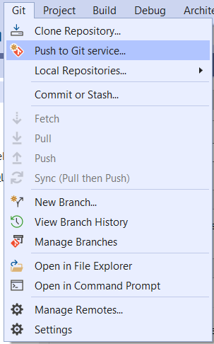 Right Click Solution => Push to Git Service.