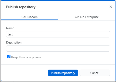 Now, Clicking the button: Publish repository in the window, we have the Publish repository window open,