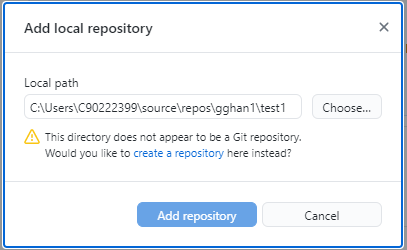 If the directory does not appear to be a Git repository, then you can click the button Add repository to Create a new repository window to create a repository,