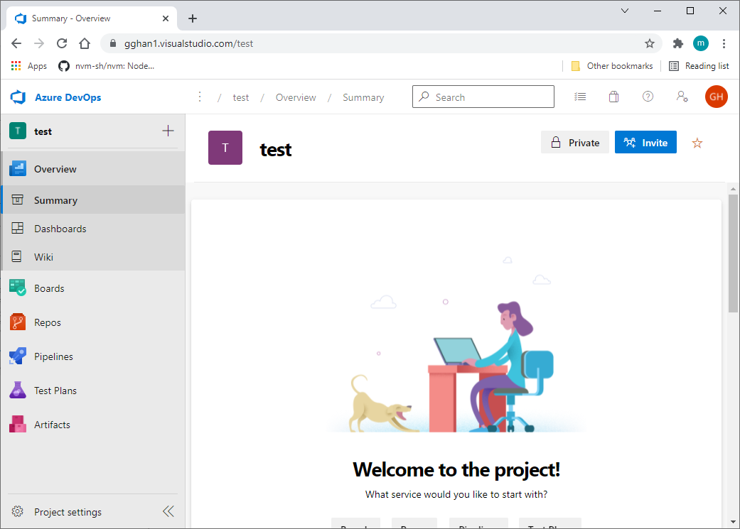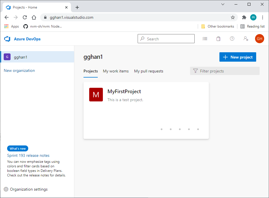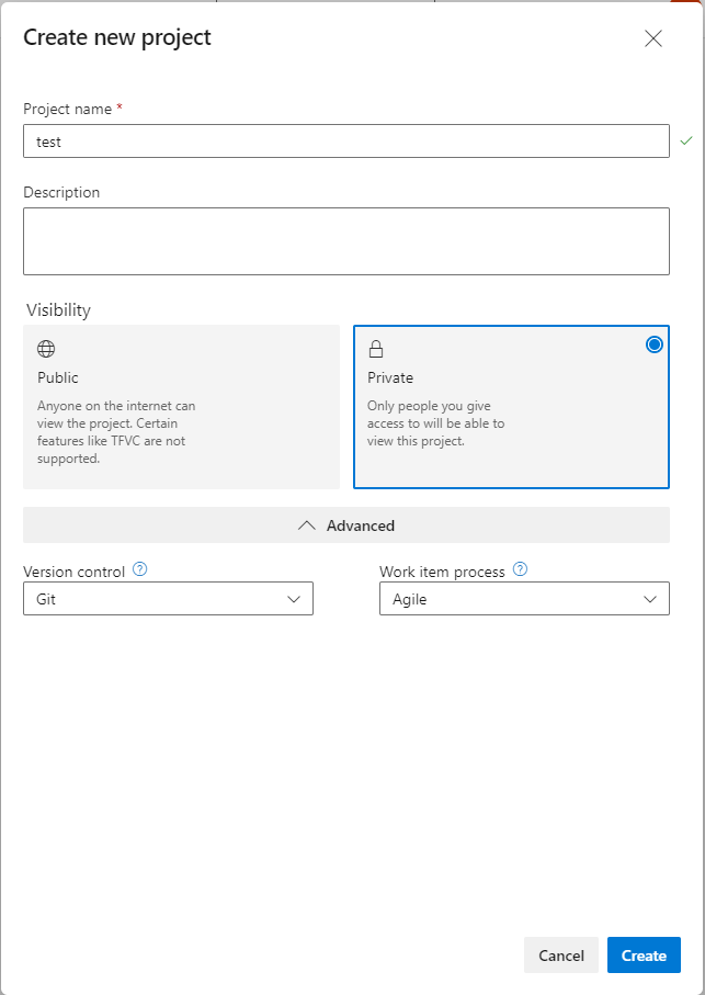In DevOps, Click the New Project button,
