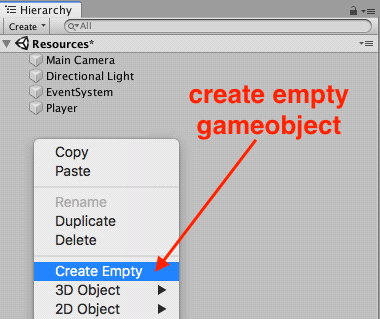 Click on the "GameObject" menu in the menu bar. Select Create Empty GameObject.