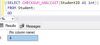 - SELECT CHECKSUM_AGG(CAST(StudentID AS int))