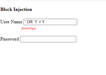 And this will only allow letters and numbers which basically cannot be used in the injection. This may be seen as a disadvantage given that there some unique names such as ‘Ren’ee’ with special characters in them and this might limit user flexibility when using the web application.
