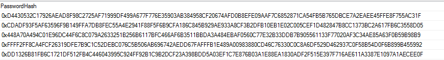 - VALUES(@user_login, HASHBYTES('SHA2_512', @PWD), @pFullName, @Dept)