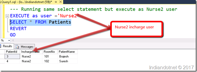 Similarly, I am running the same statement for Nurse2 users by running the command “Execute as user,” so, again I will get 2 records