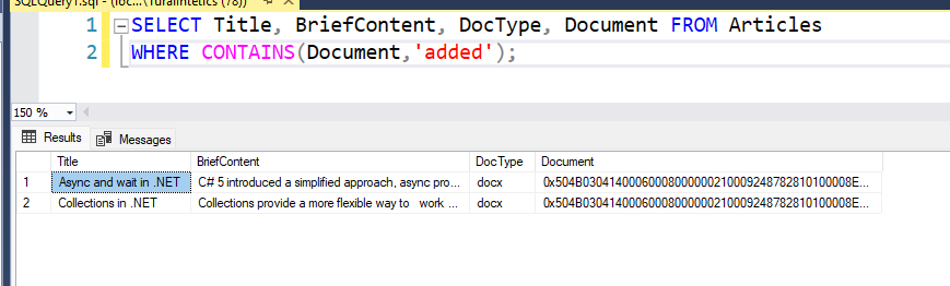 Besides simple text searching, T-SQL provides a “more advanced, deep” searching mechanism that uses a built-in Full-Text Search component. This helps you to search not just in (n)(var)char type-based columns, but you can also conduct a search in varbinary, text, XML, image, and FileStream.