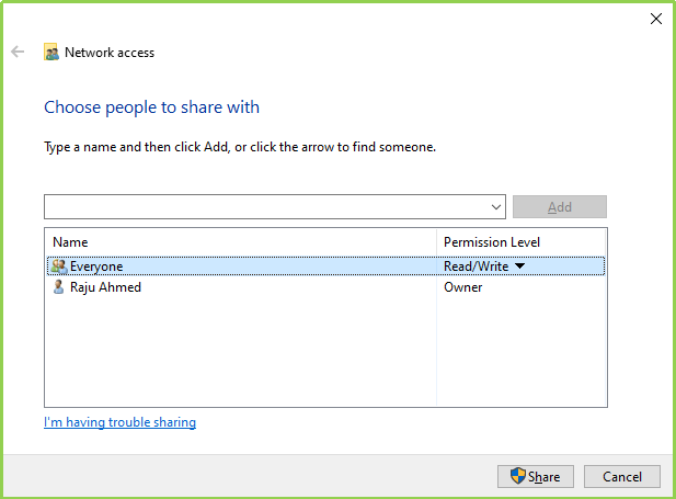 Create a folder on your Primary Server. Then go to Properties > Sharing Tab > Click On Share > Select Everyone > Click On Add > Give it Read/Write Permission > finally click on Share.