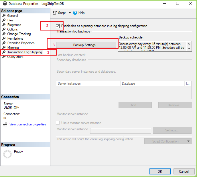 Now we’ll create the main things/configurations for our desired log shipping. Go to the primary server and select your database. Now follow these following images one by one.
