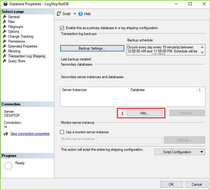 Follow the steps one by one to configure SQL Server Log Shipping(Without active directory).
