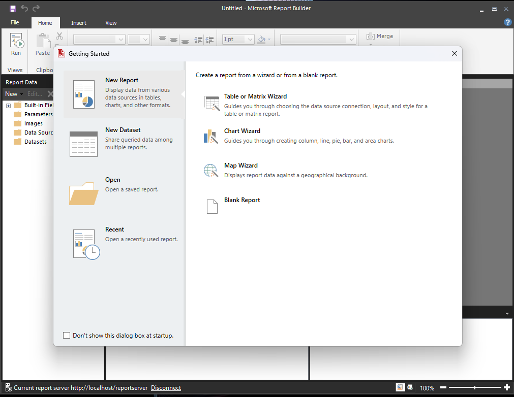 After installation: Open Report Builder: