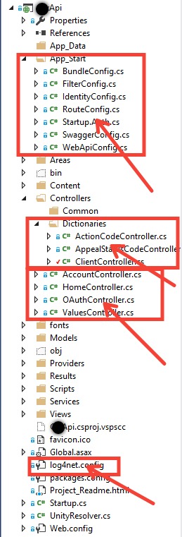 In this layer we can create api controller to use provider layer which is returning model value .Also in this layer we are implementing logging part using Log4net exception logger.see image.