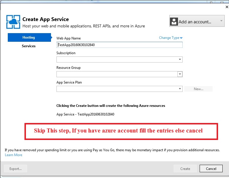 If you want to deploy in Cloud, give your Azure account information and click create. Once we create the project, the file organization and the folder organization is shown below: