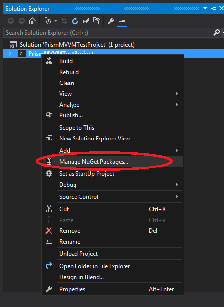Create a project named ‘PrismMVVMTestProject’ of WPF application.