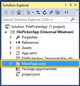 Now, go to the Solution Explorer and open the MainPage.xaml for design.