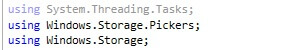 - StorageFile file = await openPicker.PickSingleFileAsync();