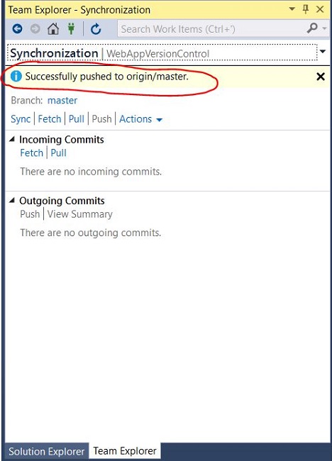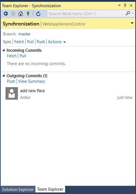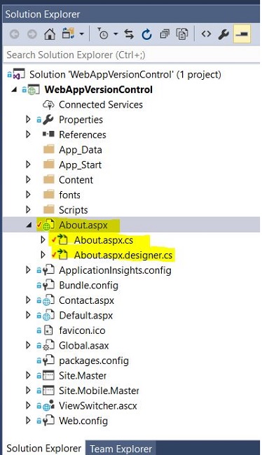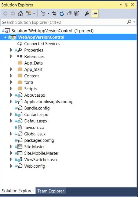 Git will create a local repo as it's a distributed version control system. Now, open your Solution Explorer. It will show a small lock icon on each file, which means all the changes checked into the version control system.