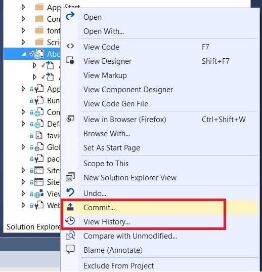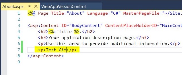 Let's make some changes to any file. Here, I am editing About.aspx file and adding 1 line.