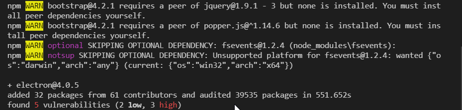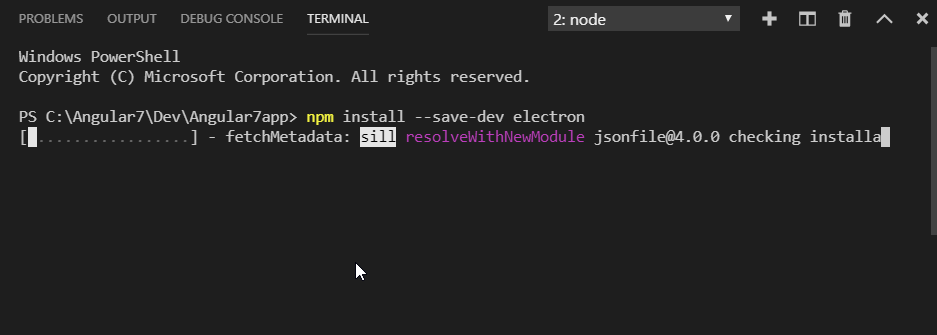 We should install Electron. The recommended way to install it is as a development dependency in your app, which allows us to implement on various apps with different Electron versions. To do so, run the following command from your app's directory.