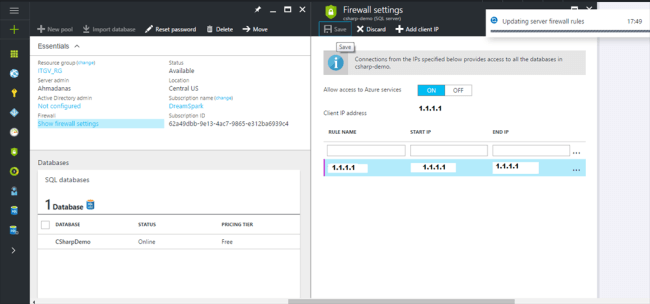 Then, click on Firewall Setting and a new blade will open showing your client IP.
