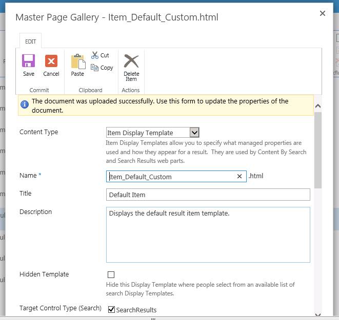 - Upload Control_SearchResults_Custon.html to the search display template.+