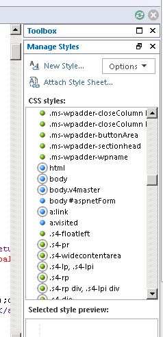 - Manage Styles box appears in right side.